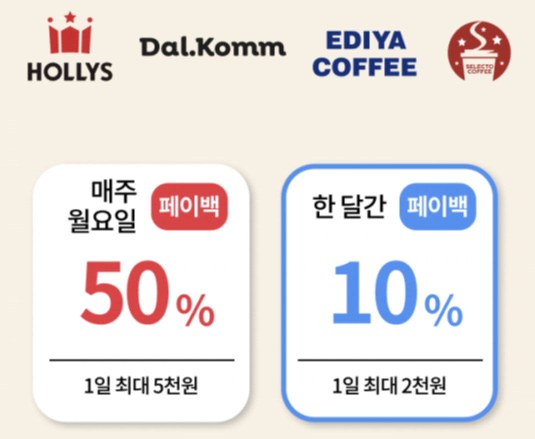 매달 할인과 페이백 이벤트가 있습니다.