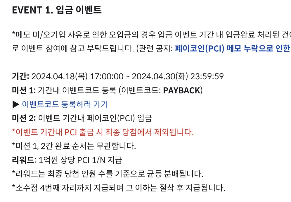페이코인을 입금한 후에 이벤트코드를 등록해도 됩니다.